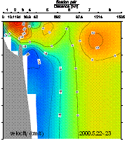 Reproduced tidal currents are shown in Figs. 3 on the flood and ebb phases. They are directing north-south in the off shore waters, whereas in the inshore waters, they are more rectilinear along the coastline corresponding to the tidal ellipses in Fig 2.